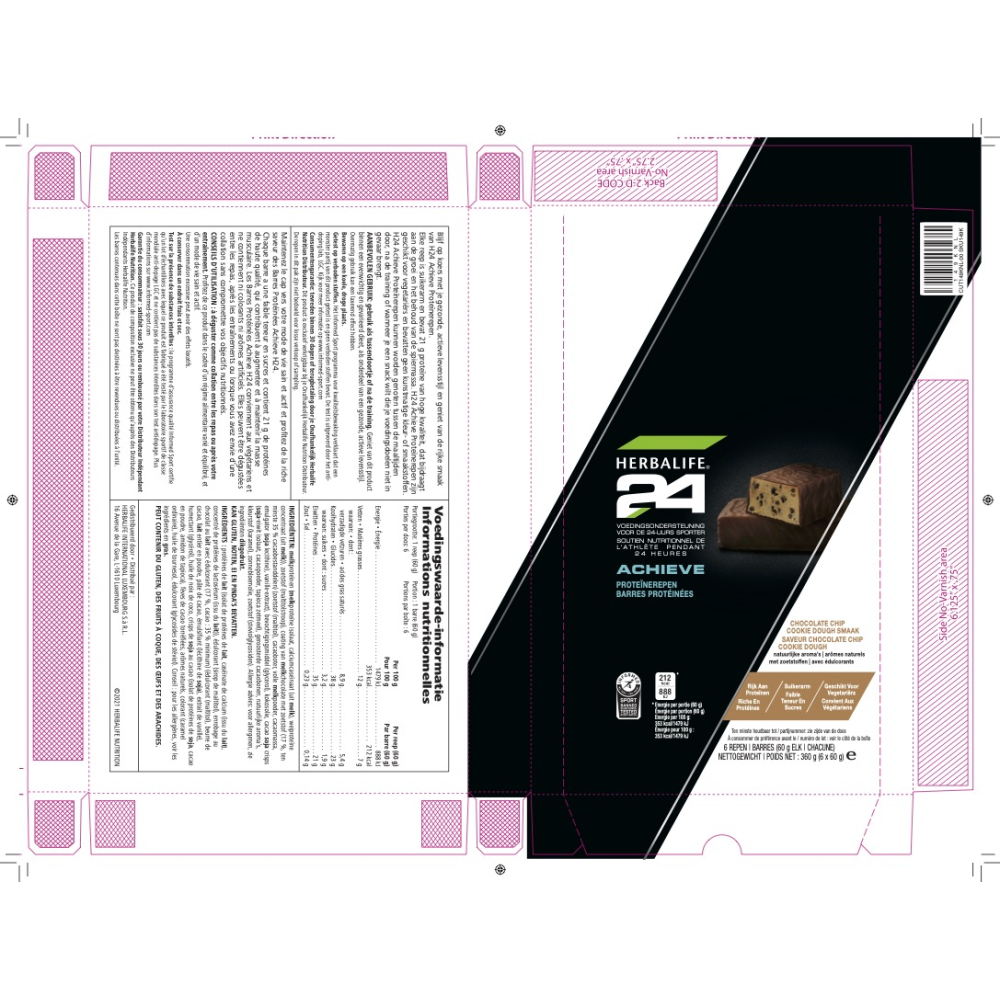 Blijf op koers binnen jouw gezonde en actieve levensstijl, terwijl je geniet van de rijke smaak van de H24 Achieve Proteïnereep Pure Chocolade of Chocolate Chip Cookie Dough smaak.