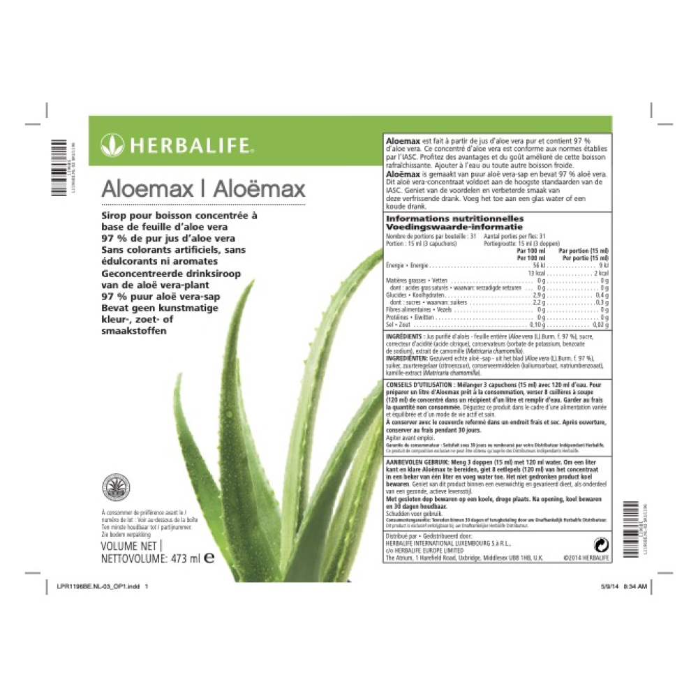 • Herbal Aloë max bevat 97% gel afkomstig van het aloë verablad en is voorzien van het kwaliteitskeurmerk van de ‘Internationale Aloëwetenschap*’ (IASC)