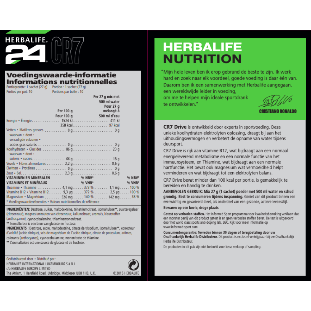 • Elke portie CR7 drive bevat minder dan 100Kcal