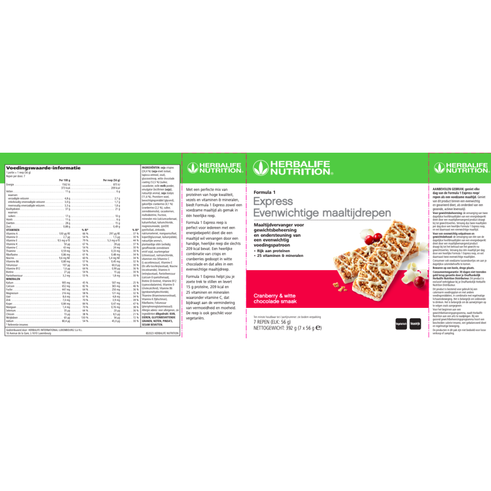 Geniet elke dag van Formula 1 Express maaltijdreep als voedingsrijke maaltijd. Geniet van dit product binnen een uitgebalanceerd en gevarieerd dieet, als onderdeel van een gezonde, actieve levensstijl.