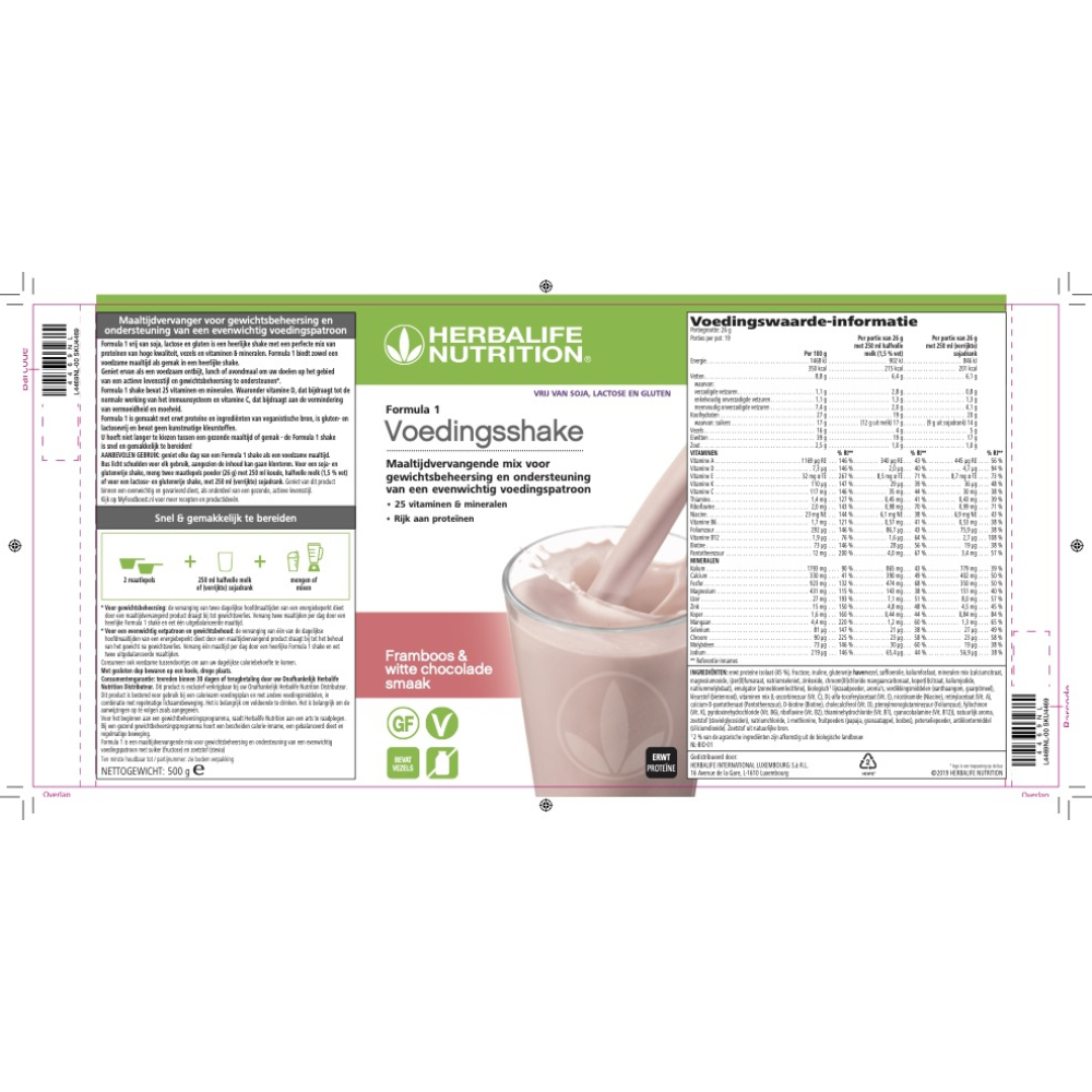 • Een F1 Vrij Van shake is snel te bereiden en een handig evenwichtig alternatief voor een calorierijk ontbijt, lunch of diner.