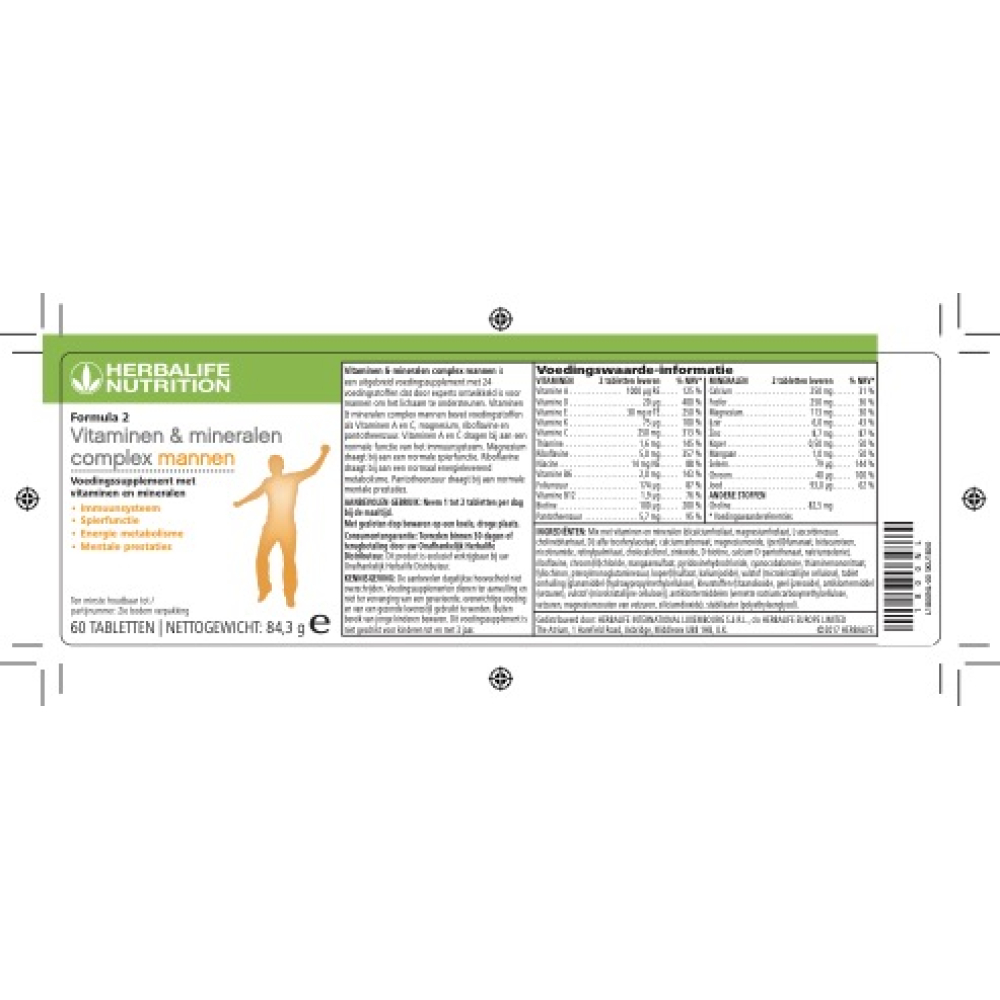 Ontdek Formula 2 Vitaminen- & Mineralencomplex Mannen, de gemakkelijke manier om 24 voedingsstoffen binnen te krijgen om de behoeften van uw lichaam te ondersteunen. Het bevat essentiële vitaminen en mineralen in de juiste hoeveelheden voor de dagelijkse gezondheidsbehoeften van mannen.