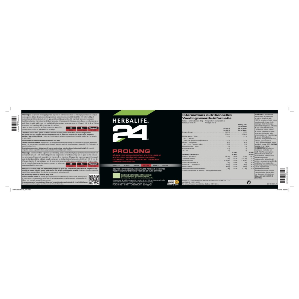 Prolong is een koolhydraat-elektrolytendrank die geweldig is voor tijdens intensieve of extensieve inspanning. Deze unieke drankmix heeft een osmolaliteit van 270‑330 mOsmol/kg en bevat naast wei-proteïne ook koolhydraten, de groei en het behoud van magere spiermassa te ondersteunen.