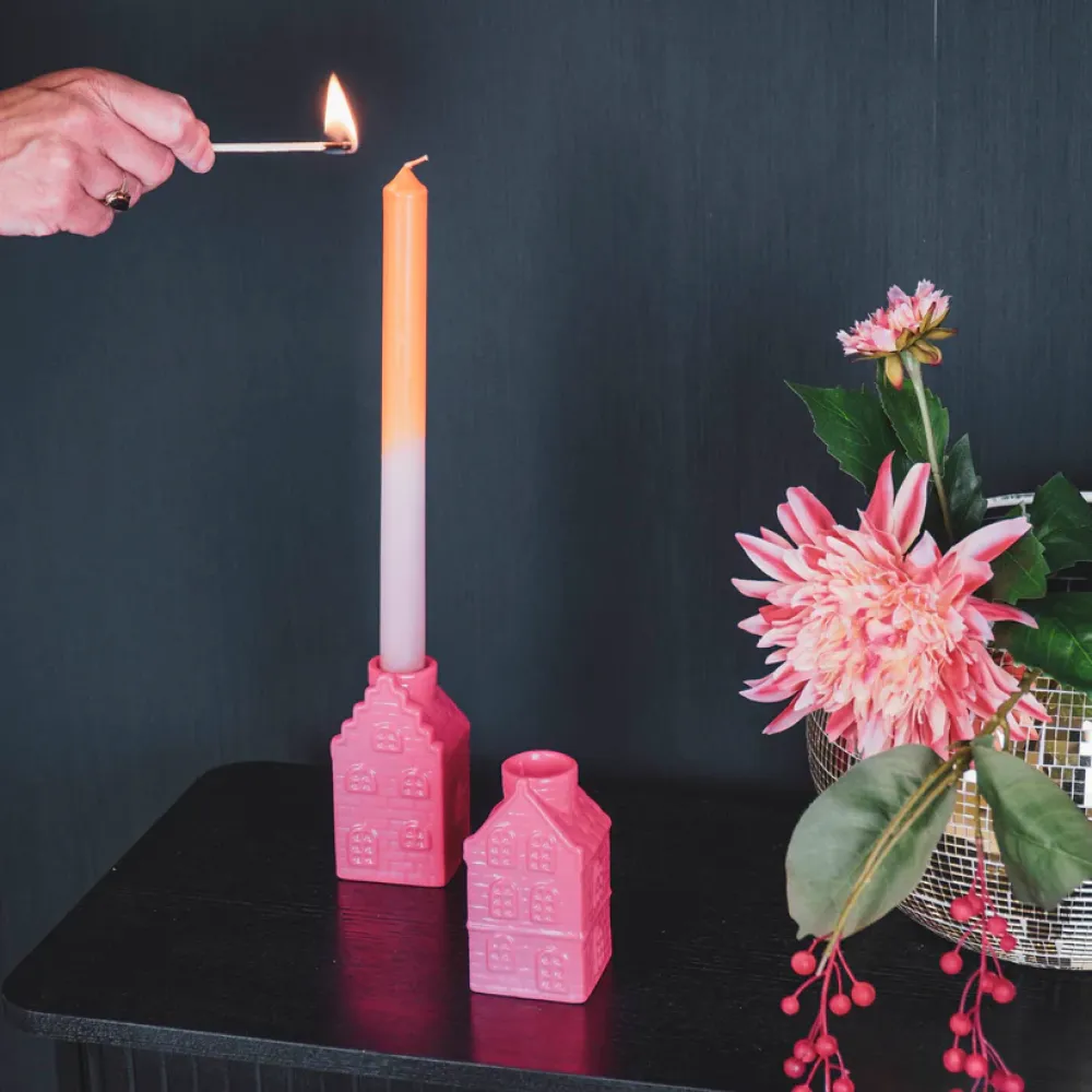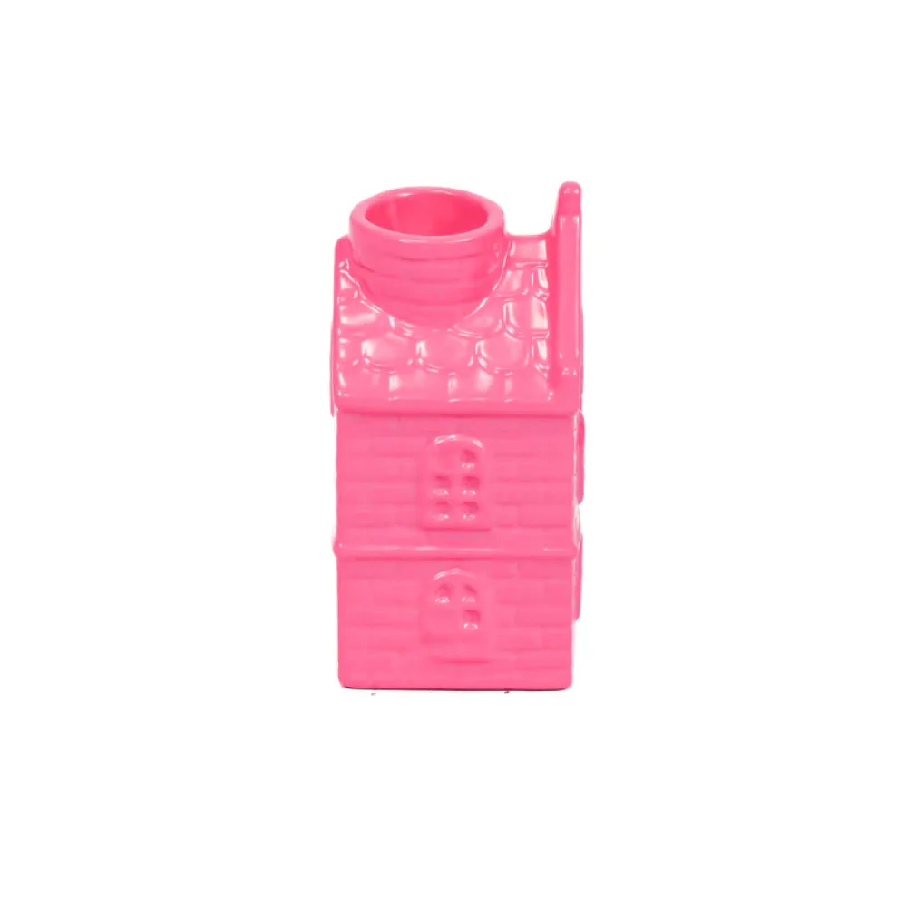 Kandelaar - Huis - Neon Roze - 6x5,5x11cm