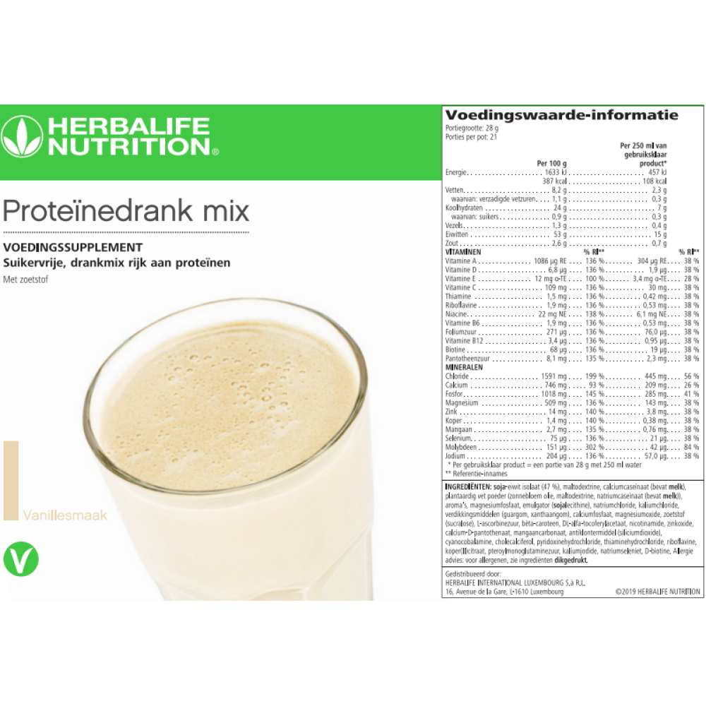 *Proteïne drankmix is niet geclassificeerd als maaltijdvervanger wanneer het gemaakt wordt met Formula 1.
