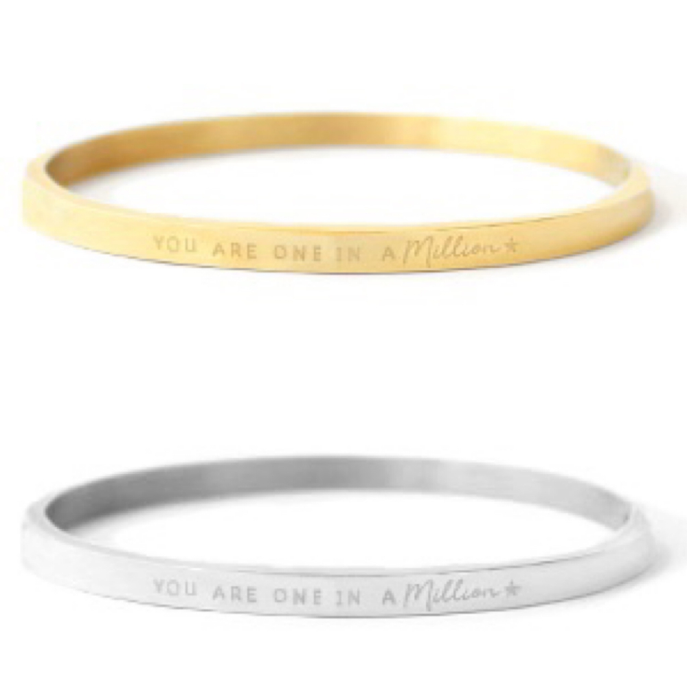 Roestvrij stalen (RVS) Stainless steel armbanden "YOU ARE ONE IN A MILLION" in de kleur goud of zilver. De armband is van een mooie zware kwaliteit en allergie-proof.