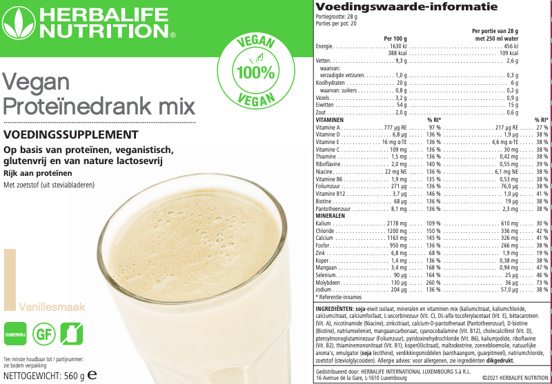 Vegan Proteïnedrank mix is de perfecte manier om je proteïne inname te verhogen gedurende de dag. Voeg het toe aan je favoriete Formula 1 shake voor een uitgebalanceerde maaltijd die rijk is aan proteïnen en laag in suiker.