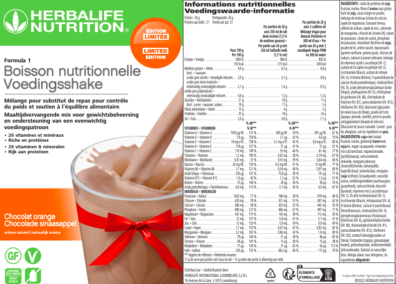 * Ondersteund door de wetenschap: Klinische studies tonen aan dat het dagelijks gebruik van maaltijdvervangende shakes als onderdeel van een caloriebeperkend dieet, samen met gemiddelde beweging, effectief is voor het beheersen van het gewicht.
