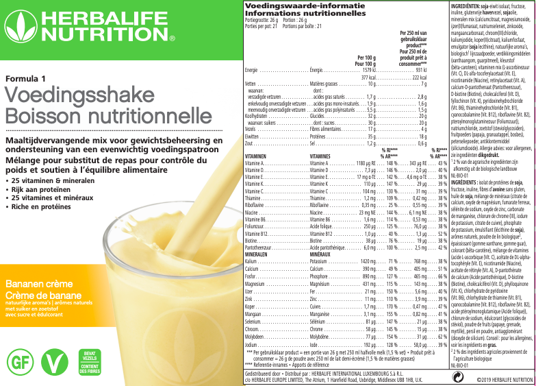 * Formula 1 shakes zijn rijk aan proteïnen uit zuivel en soja (18 g per portie) en een goede optie als u magere spiermassa op wilt bouwen door training.