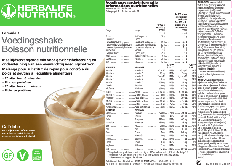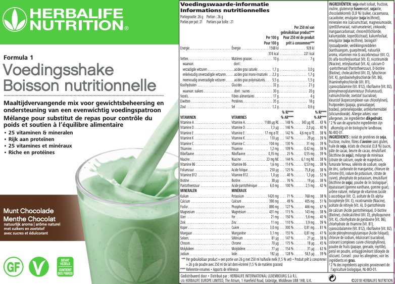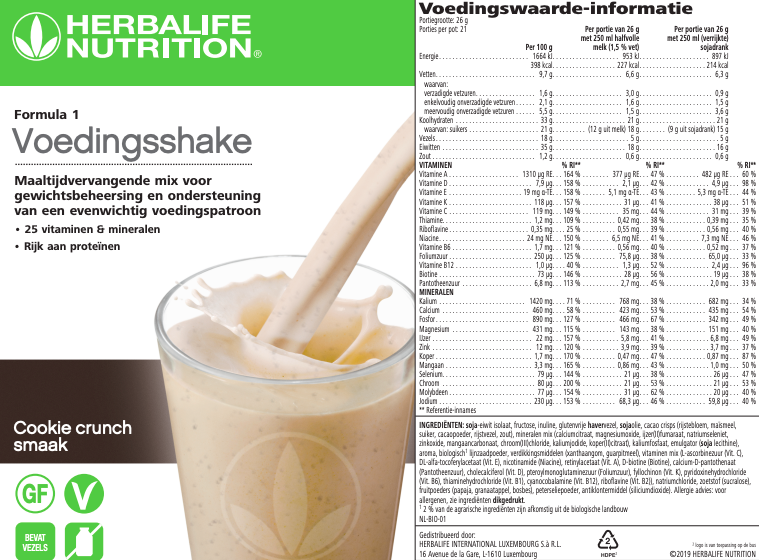 * Verkrijgbaar in zes heerlijke smaken en nu ook verkrijgbaar: F1 Vrij Van – vrij van lactose, soja en gluten als het volgens de voorschriften bereid wordt en tevens geschikt voor vegetariërs.
