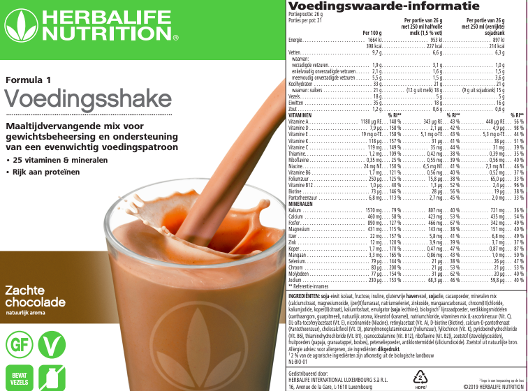 * Een Formula 1 shake is snel te bereiden en een handig evenwichtig alternatief voor een calorierijk ontbijt, lunch of diner.